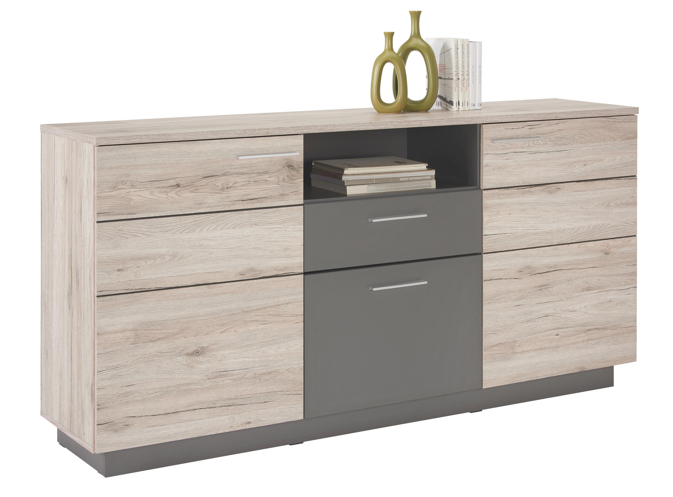Sideboard Anrichte Mehrzweckschrank Grau Timberwood 1 Tur 4 Schubladen Amazon De Kuche Haushalt