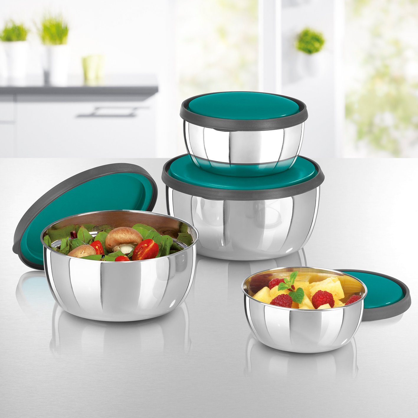 J Frederic Edelstahl Schussel Mit Deckel Salatschussel Mit Deckel Xl Schusselset 4 5l 2 5l 1 5l Und 0 75l Hochwertiger Extra Dicker Ruhrschussel Aus Edelstahl Amazon De Kuche Haushalt