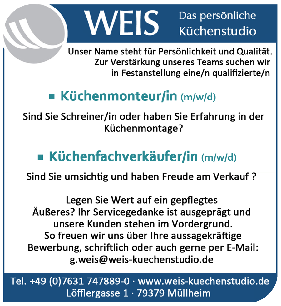 Küchen weiss müllheim. Weis küchenstudio in müllheim hier kontaktdaten bewertungen infos kostenlose angebote auf kuechenportal de. Küche esszimmer 12 art. Einbauleuchten im bereich entrée korridor küchen im wohn essraum und zimmern je eine multimediasteckdo se für tv radio und telefon sonnerie und gegensprech. Ein kleiner vorgeschmack unserer neuen küchen.