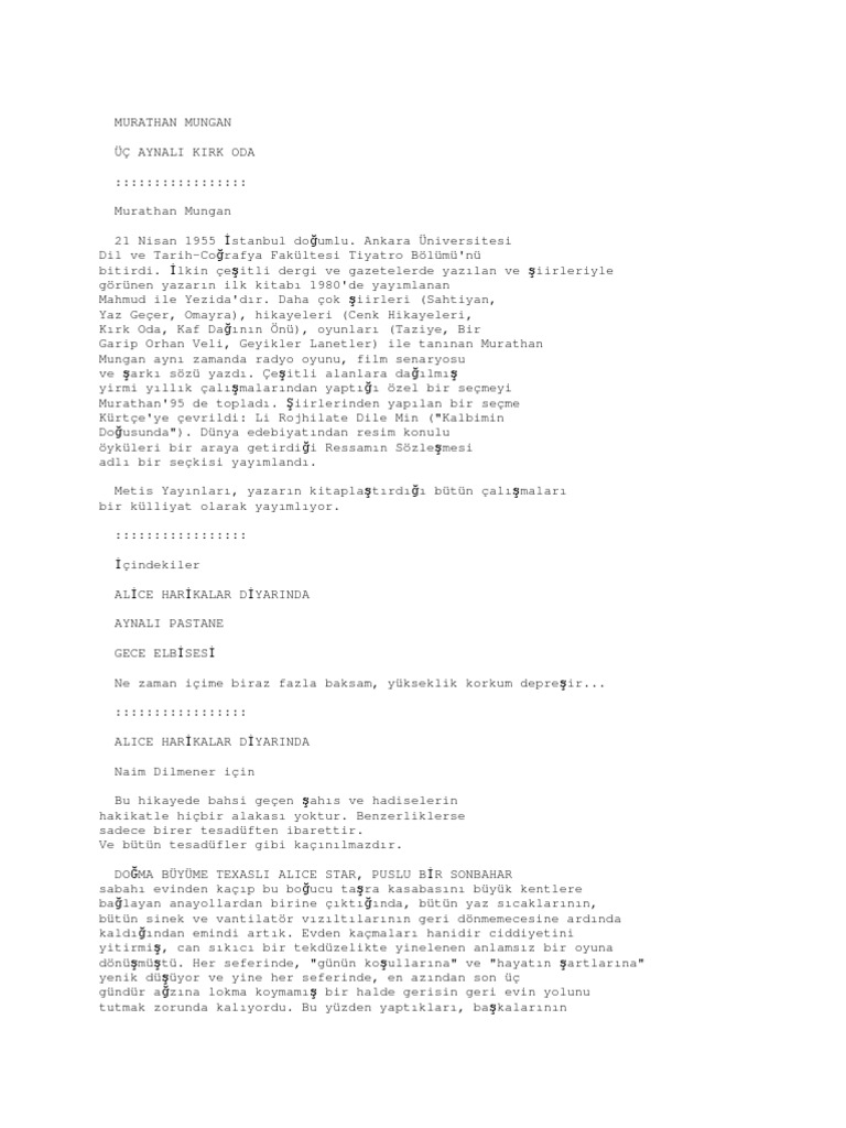 Murathan Mungan Uc Aynali Kirk Oda