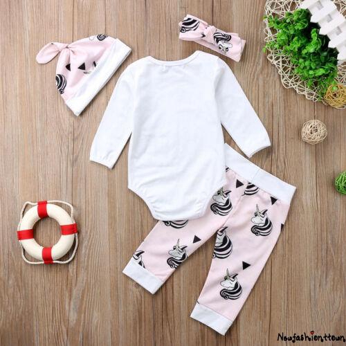 Set 4pcs Romper Katun Bayi Perempuan Lengan Panjang Gambar Unicorn Celana Bandana Topi Shopee Indonesia