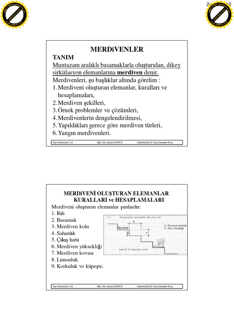 Http Www Cahitgurer Com Fileupload Ks172985 File Yapi Teknolojileri Ii Ders 4 Merdiven Dengelendirmeleri Pdf