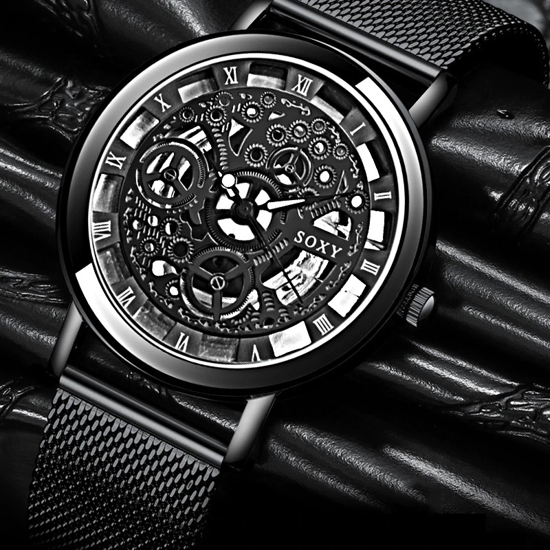 Soxy Luxury Skeleton Watches Men Watch Fashion Gold Watch Men Clock Me Gear Citizen